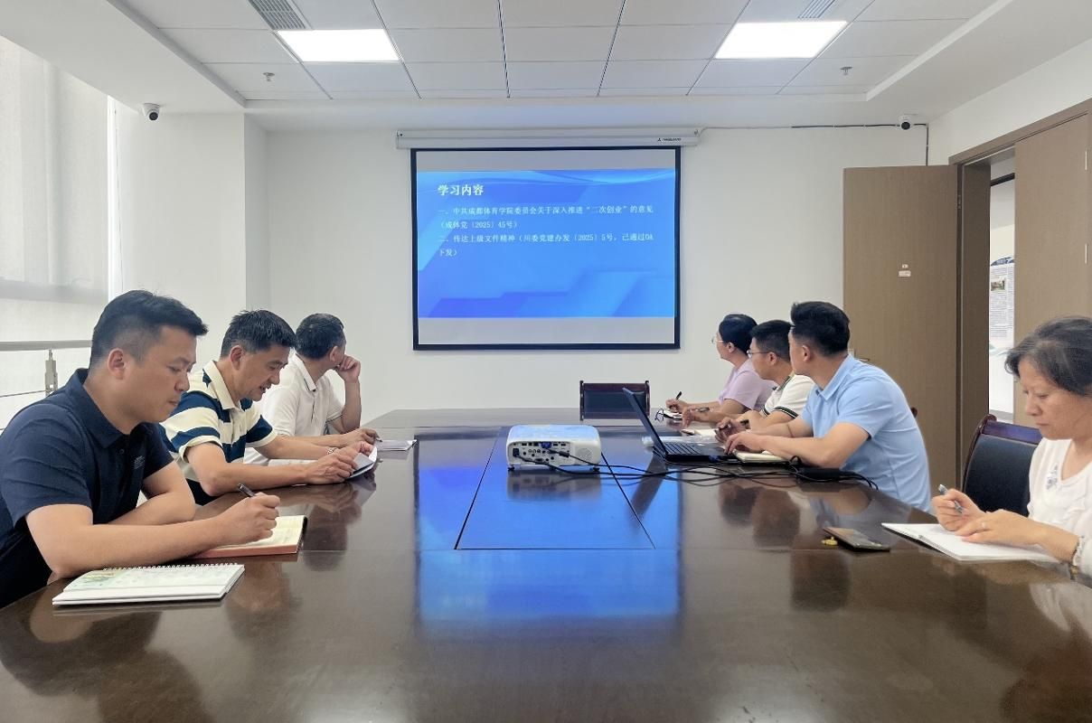 会议学习了《中共成都体育学院委员会关于深入推进“二次创业”的意见》、传达上级文件(川委党建办发〔2025〕5号的精神等内容。